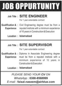 Vacancies Details Of Site Engineer Islamabad Jobs 2025